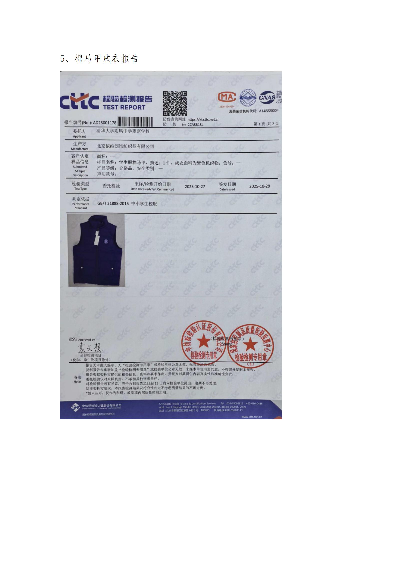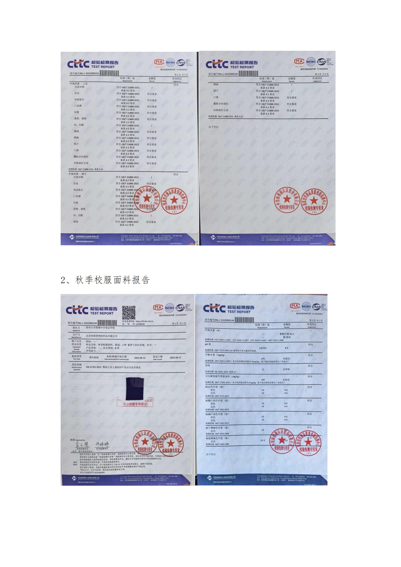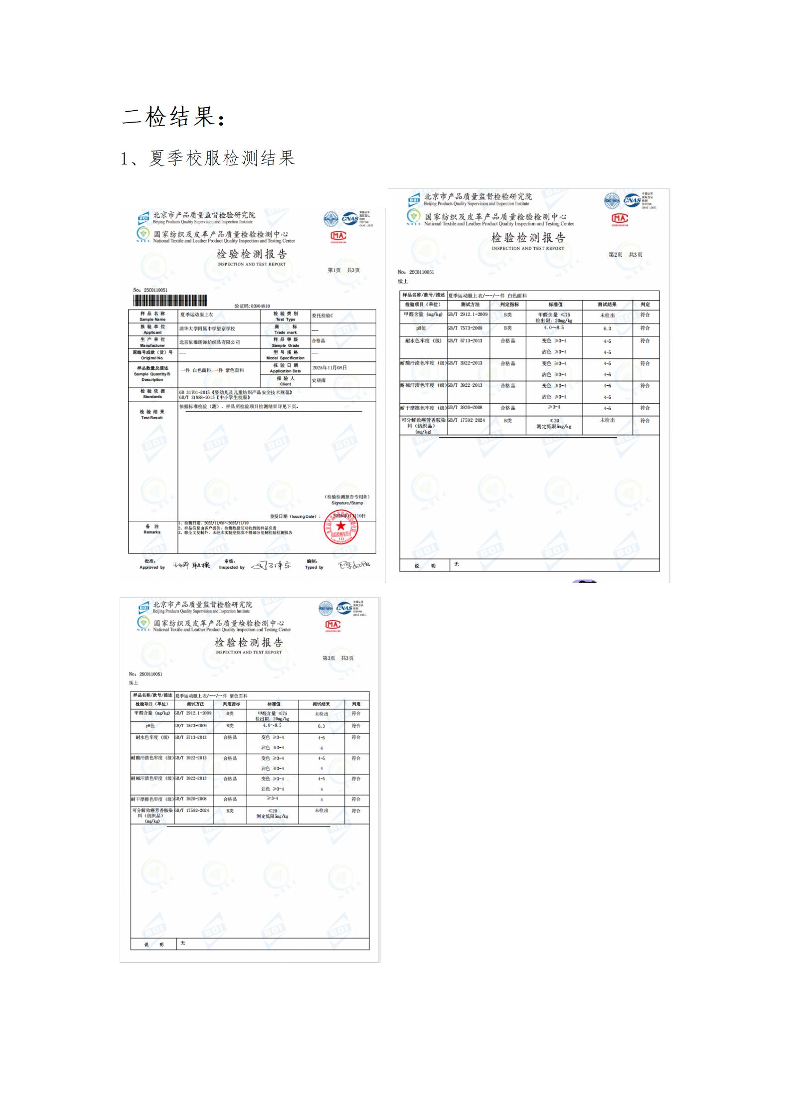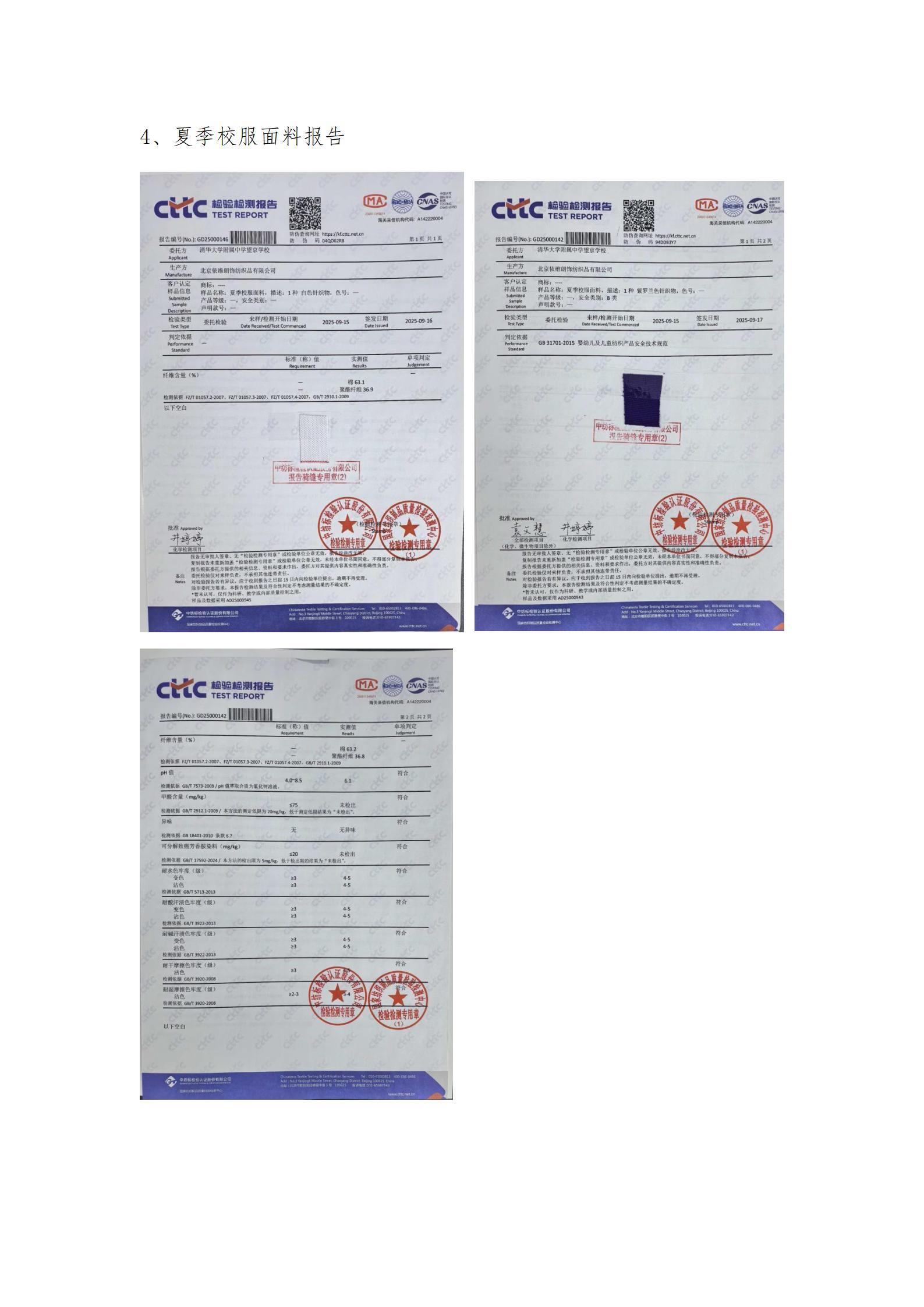 清华大学附属中学望京学校 2025年学生校服(运动服)检测结果(双送检)公示